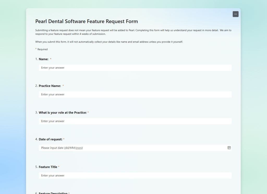 Where to find our feature request form. If you’ve got any ideas on new features, anything you would like to request to be added to pearl you can tell us from here.
