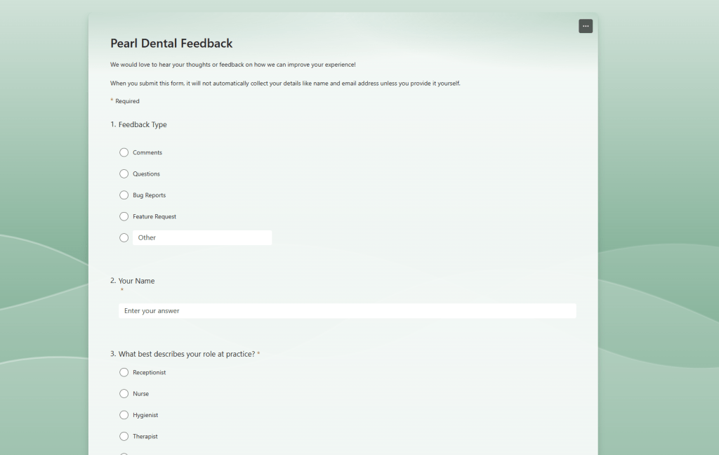 2) Your web browser will now open to a Microsoft from. Select the options that best fit who you are and what feature you are requesting for to be added to Pearl.