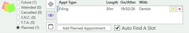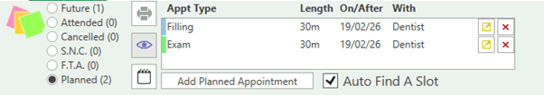 You can add a planned appointment by using the patient banner at the top of the screen. Assure you that the appointment display by ticking the "Planned" button. Once you have done that use the ‘Add Planned Appointment’.